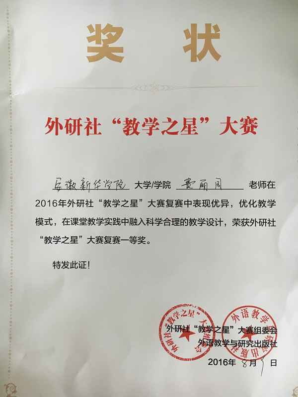 • 安徽新葡萄娱乐场798学院西席在天下英语“教学之星”大赛中喜获佳绩