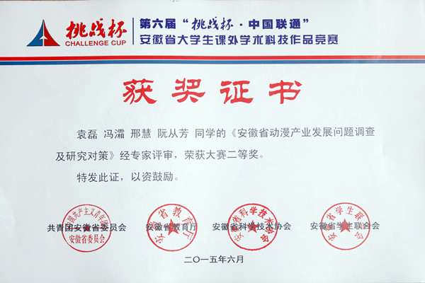 安徽新葡萄娱乐场798学院学子在第六届“挑战杯”安徽省大学生课外学术科技作品竞赛中喜获佳绩