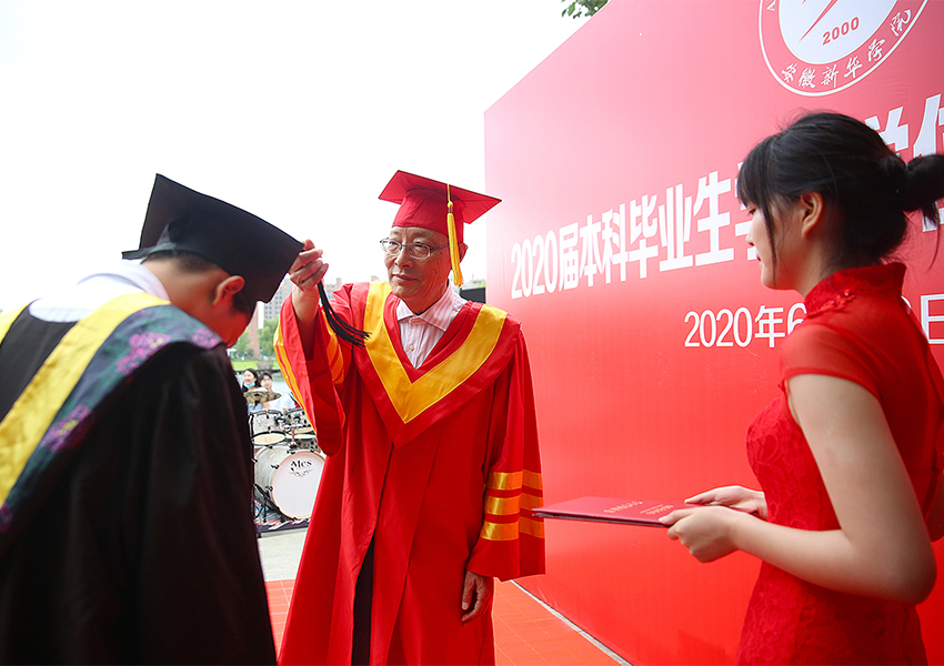 新葡萄娱乐场798集团? 安徽新葡萄娱乐场798学院校长石秀和为结业生代表正冠扶苏