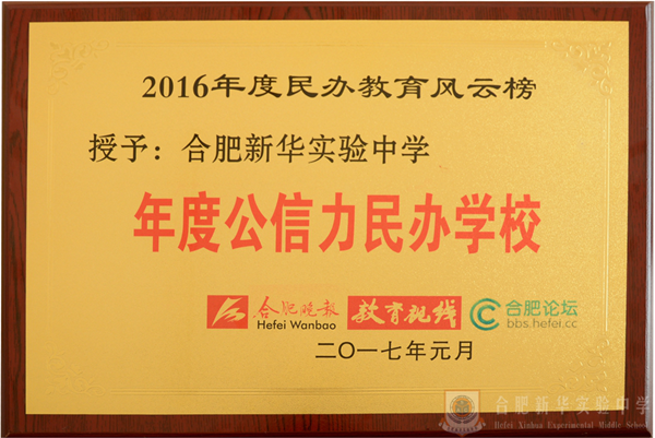 克日,,,,,,,,2016年度“民办教育风云榜”颁奖仪式在合肥盛大举行,,,,,,,,此次仪式由合肥论坛与合肥晚报团结主理。。。。。。。合肥新葡萄娱乐场798实验中学应邀加入本次颁奖仪式,,,,,,,,并获评“年度公信力学校”。。。。。。。