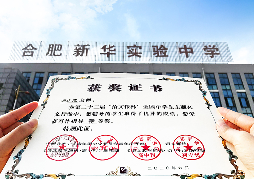 近期,,,,,第二十二届“语文报杯”天下中学生作文大赛圆满落下帷幕。。。。。。合肥新葡萄娱乐场798实验中学师生在天下初中组角逐中斩获多个奖项,,,,,效果喜人,,,,,展现了学校语文教学的丰富效果。。。。。。